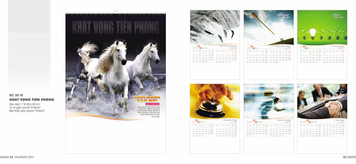 Chuẩn bị cho Xuân Giáp Ngọ 2014, công ty TNHH DV PIEL giới thiệu quý khách hàng những bộ lịch đẹp mắt theo những chủ đề: Khát vọng tiên phong, Chung sức thành công, Việt Nam di sản thế giới, Thắng cảnh Việt Nam, Tài Lộc, Phong thủy....